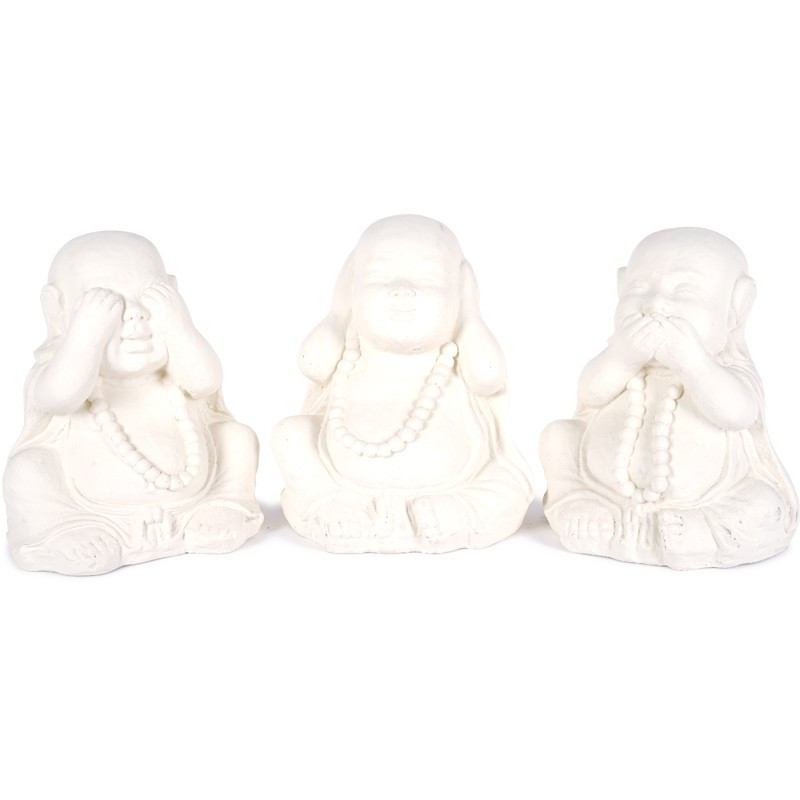 3 Statues Moines de la Sagesse 40 cm - Blanc