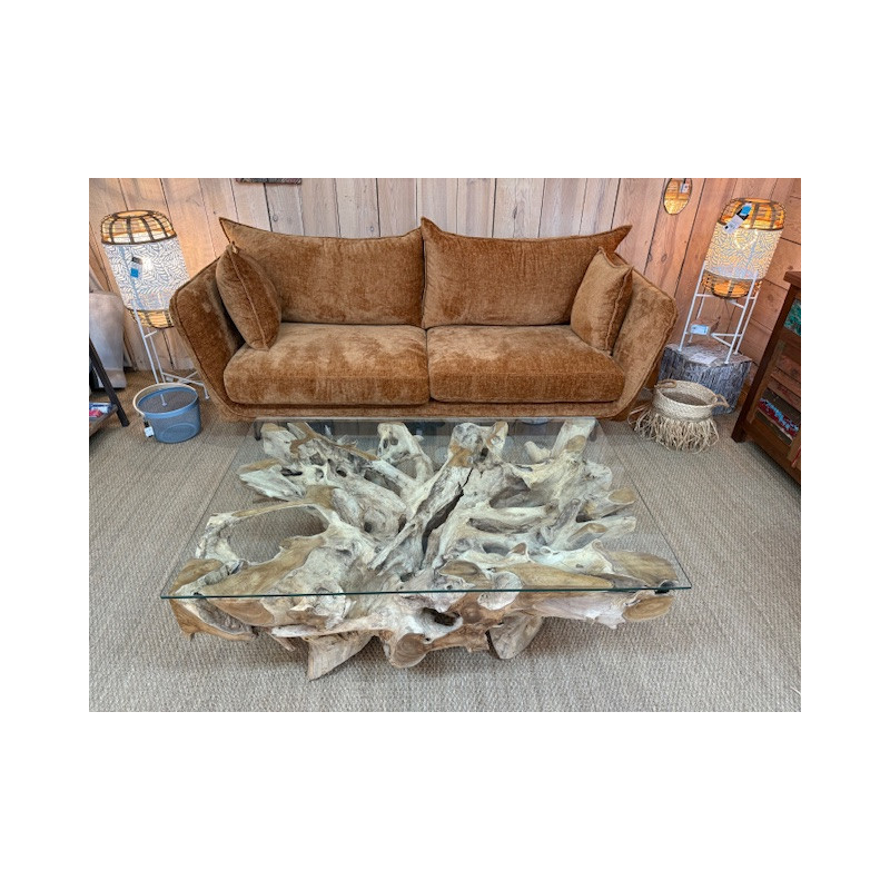 Misez sur une décoration exotique pour votre salon avec cette table basse très atypique et unique réalisée à partir d'une racine de teck.