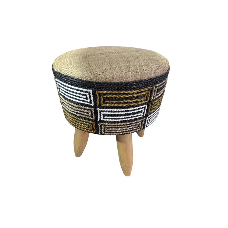 Entièrement fabriqué à la main, ce tabouret unique marie subtilement bois massif, corde naturelle et fibres tressées pour un rendu à la fois moderne et traditionnel. Son motif en géométrique aux inspirations ethniques en fait une véritable pièce déco.