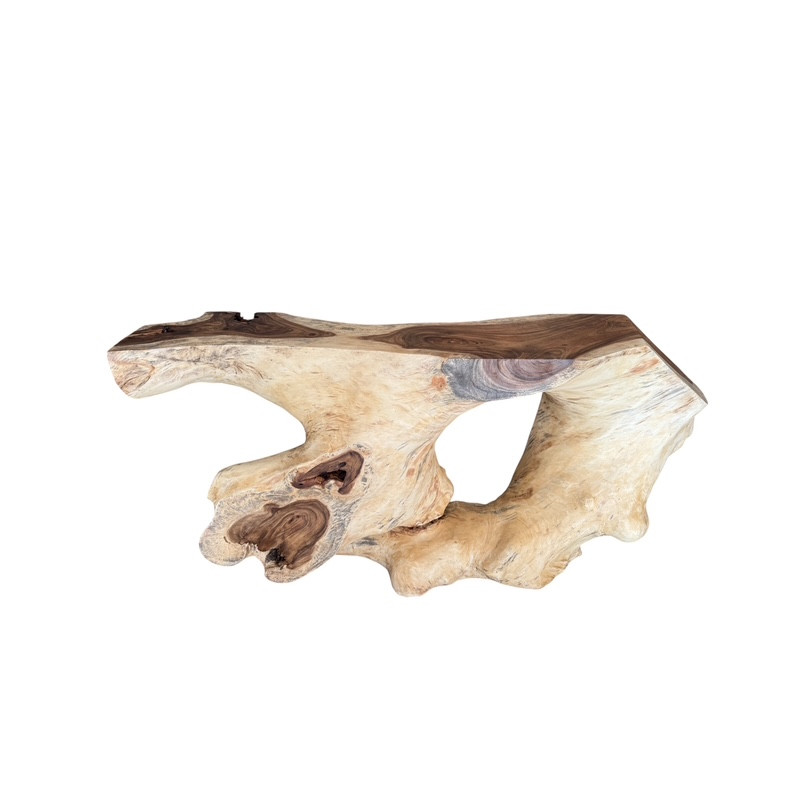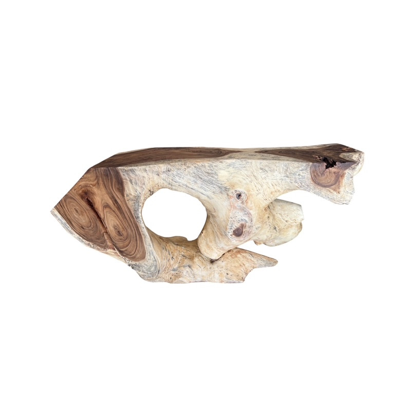 Chaque console est entièrement réalisée à la main par des artisans balinais, perpétuant un savoir-faire transmis de génération en génération. Le travail du bois massif met en valeur la noblesse de la matière et confère à chaque pièce une personnalité unique : aucune console ne ressemble à une autre.