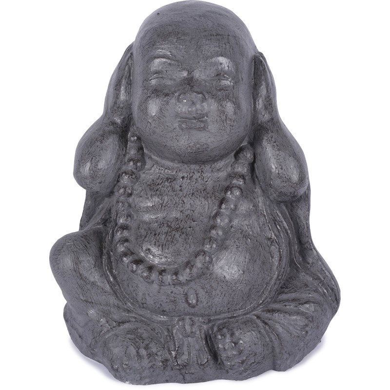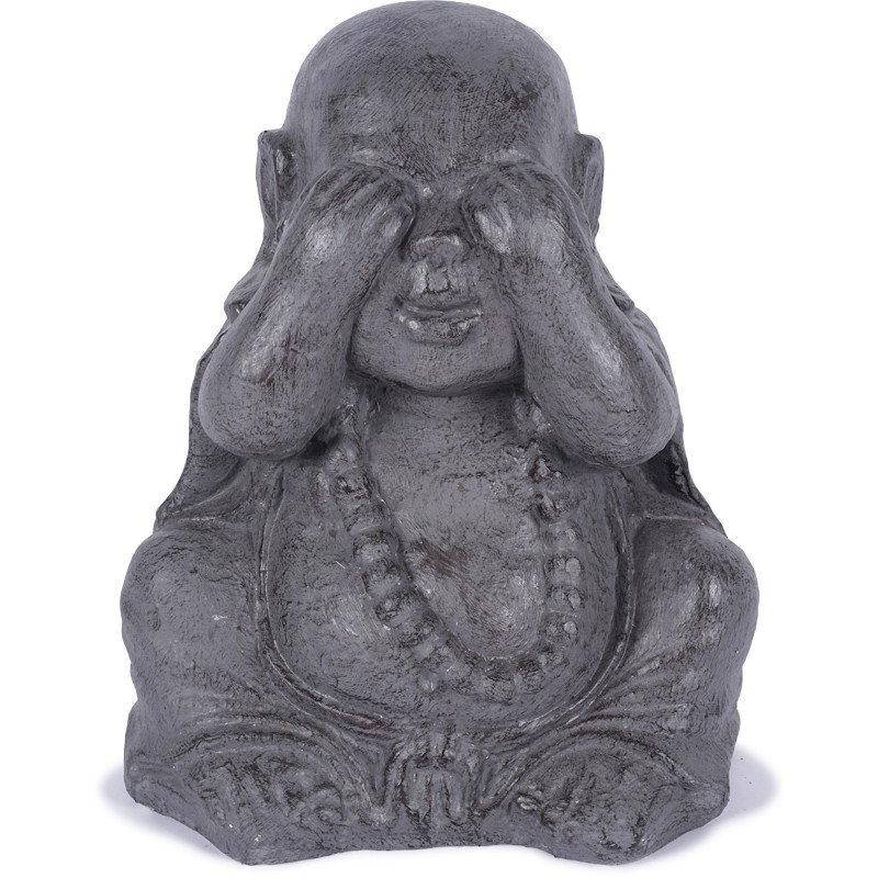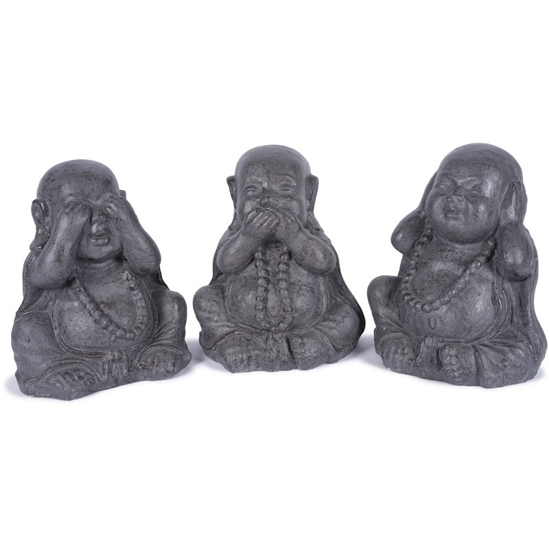3 Statues Moines de la Sagesse 40 cm - Gris